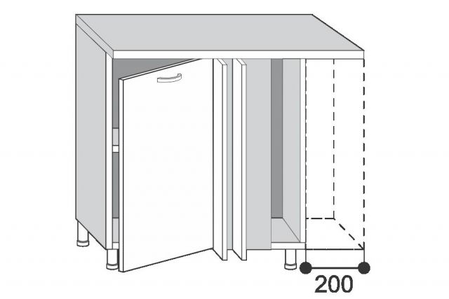 2.30.1зл Грейс Шкаф-стол кухонный на 300 с 1-й дв. приставной ЛЕВЫЙ (б/столешницы)